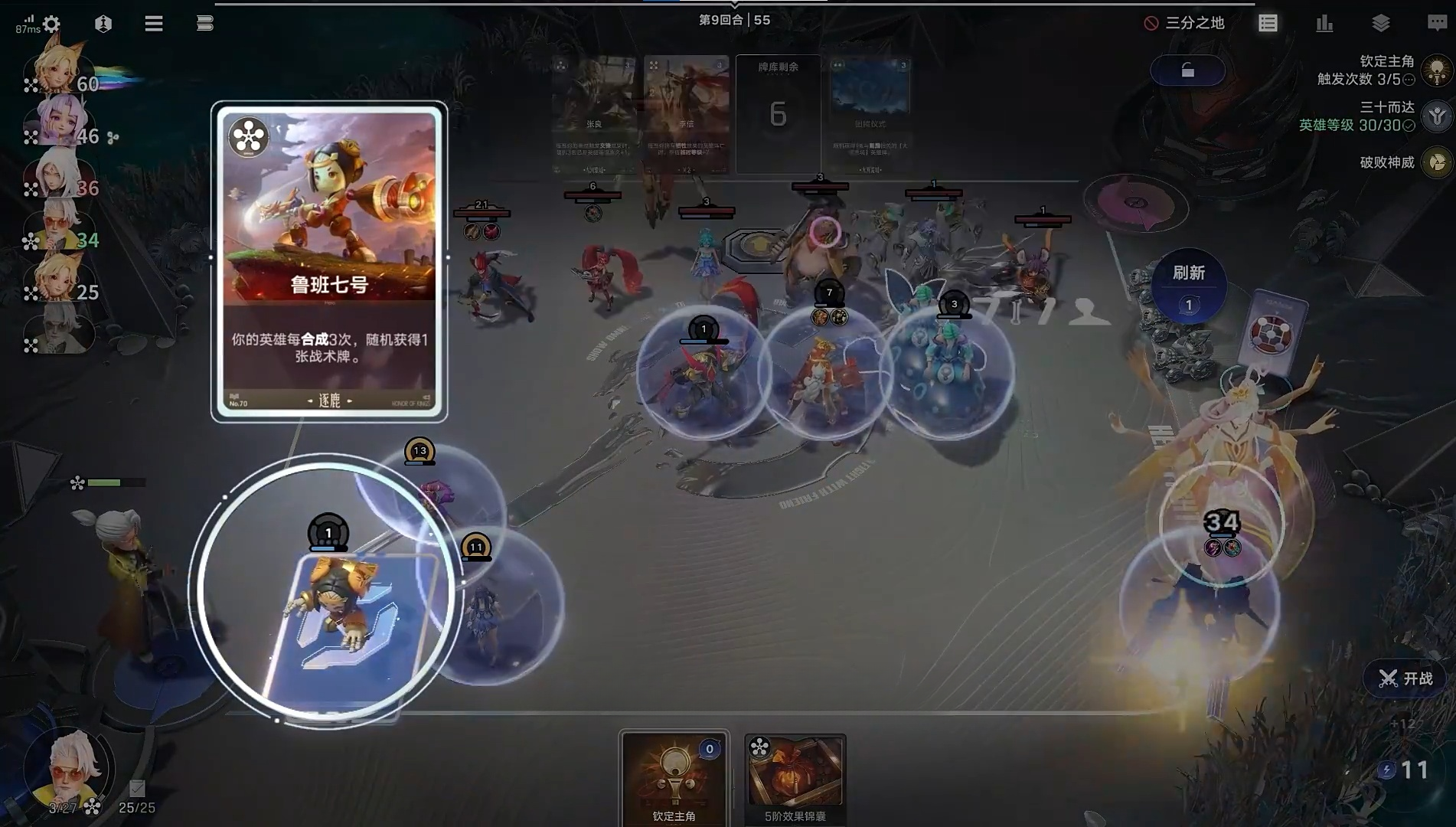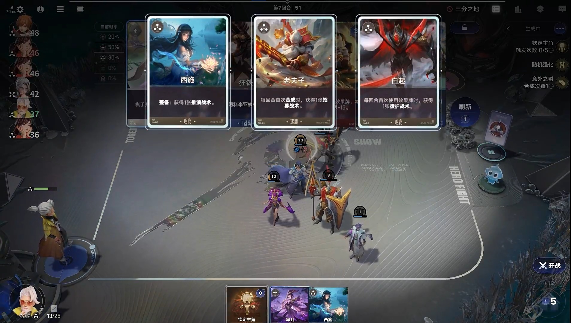 5、第四回合左右升至3級,開始補齊西施、老夫子、白起等核心輔助單位,為中期發(fā)力鋪路。