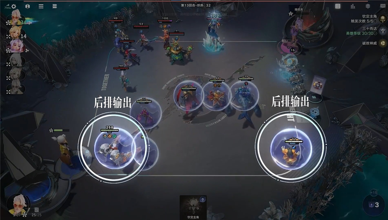 13、蒙犽與魯班七號則放置在中后排安全區(qū)域持續(xù)輸出。