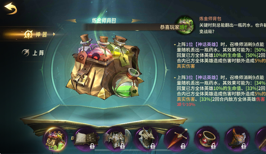 5、游戲中還有各種各樣的神器,在戰斗過程中,這就相當于召喚師使用的各種技能,有主動,有被動,玩家可以根據自己陣容靈活搭配。