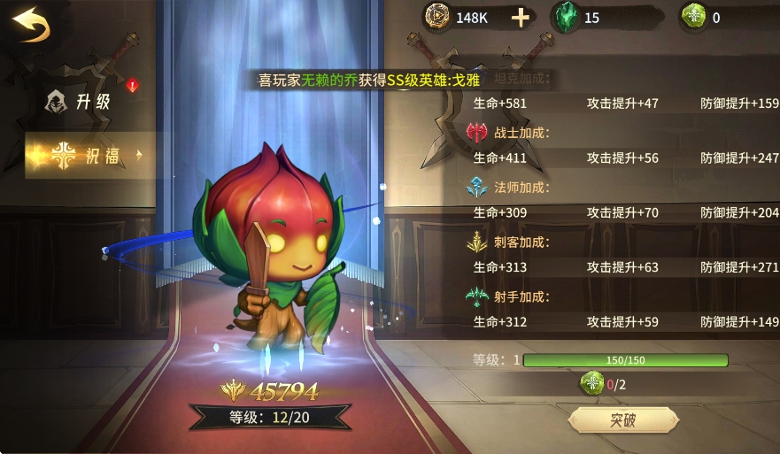 3、是可以提升召喚師的祝福等級,這可以直接給各個職業的英雄進行屬性加成。