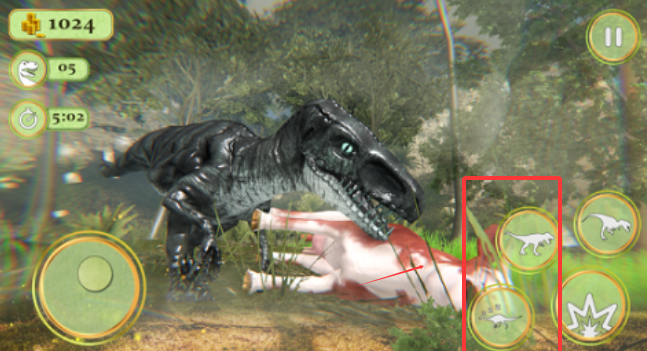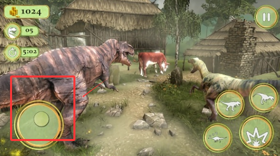2、用左下角的虛擬搖桿控制恐龍移動,去追逐畫面里的鹿或者其它恐龍吧。