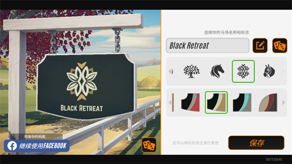 3、需要為自己的馬場取一個名字,同時也可以設(shè)置馬場的標(biāo)志,如果還沒有想到合適的名字也沒關(guān)系,可以選擇隨機(jī)取名,稍后在農(nóng)莊可以進(jìn)行更改。