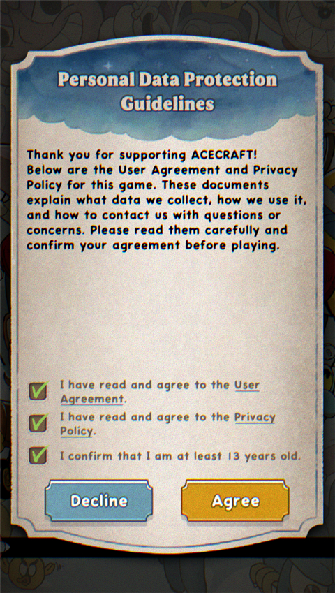 1、搭配加速器進(jìn)入發(fā)條特工隊(duì)國際服手游,確認(rèn)相關(guān)協(xié)議。