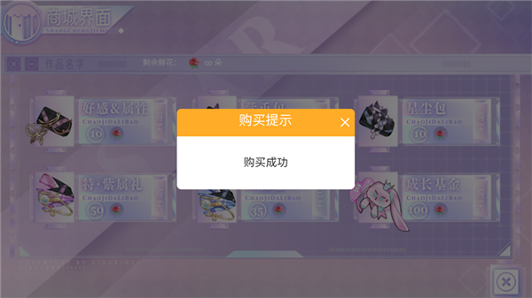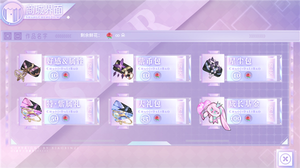 3、由于本游戲已經成功破解無限鮮花,我們可以打開鮮花商城直接購買紫幣包、星塵包、成長基金等物品。
