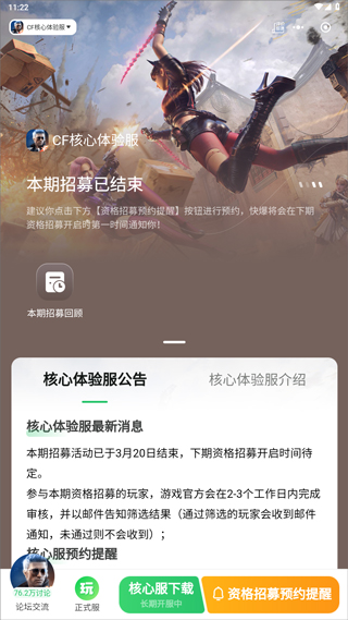 核心體驗服為長期測試服務器,每日需完成官方發布的任務,否則會清除資格。