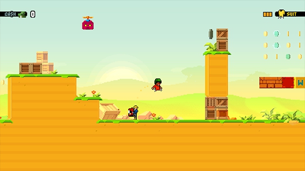 現(xiàn)金島槍戰(zhàn)是一款結(jié)合射擊與平臺跳躍的像素風(fēng)格冒險(xiǎn)游戲。玩家扮演來自HOTGUNS隊(duì)的Bobby,踏上尋找并保護(hù)傳說中金錢樹的冒險(xiǎn)之旅。游戲中,玩家需使用槍支、頭盔、手雷和噴氣背包等裝備,在島上探索各種場景,與怪物激戰(zhàn),收集金幣和地圖碎片,解鎖新武器和裝備。游戲畫面精美,采用絢麗多彩的卡通像素畫風(fēng),搭配輕松愉悅的音效,營造出獨(dú)特的游戲氛圍。此外,游戲還設(shè)有負(fù)重機(jī)制,影響角色行動,增加了策略性和可玩性。