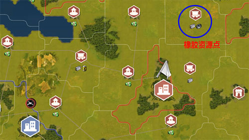 除軍事建筑外,其他資源建筑也要搶占先機。優(yōu)先搶占城市之間的橡膠資源點,此資源點為前期主要資源且數(shù)量較少。
